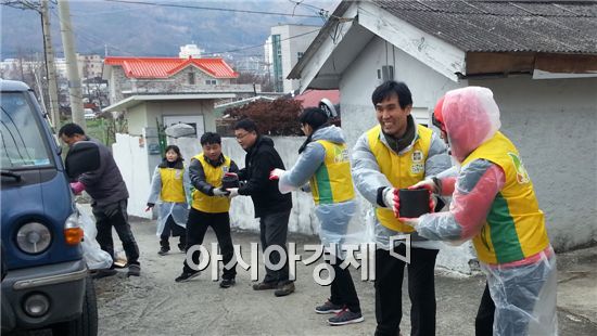 순천시 조곡동에 한파를 녹이는 관내 기관과 단체 등 각계의 따뜻한 기부 행렬이 줄을 잇고 있다.<br />