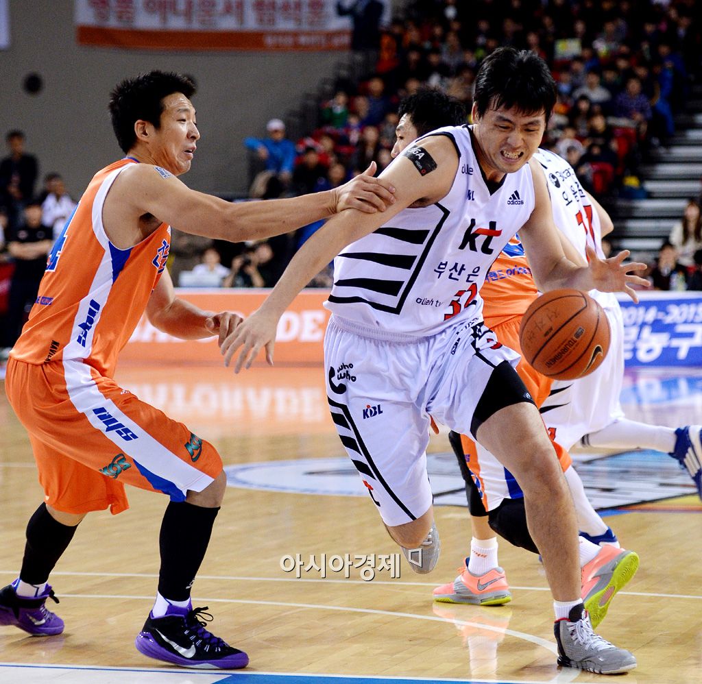 [인천=아시아경제 김현민 기자] 프로농구 인천 전자랜드와 부산 KT의 경기가 28일 인천 삼산월드체육관에서 열렸다. KT 김승원이 상대 이현호의 수비를 뚫고 공격하고 있다. 김현민 기자 kimhyun81@asiae.co.kr<ⓒ세계를 보는 창 경제를 보는 눈, 아시아경제(www.asiae.co.kr) 무단전재 배포금지>