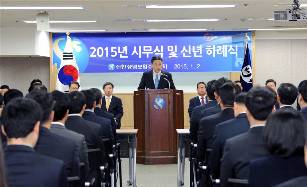 [아시아경제 김대섭 기자] 신한생명은 서울시 중구 청계천로 소재 본점에서 '2015년 시무식 및 신년 하례식'을 실시했다고 2일 밝혔다.이날 이성락 사장은 신년사를 통해 올해 전략목표 '2015 변화의 시작, 체인지 투 밸류(Change to Value)'를 발표했다. 회사의 가치 제고를 위해 새로운 변화를 시작하자는 의미를 담고 있다.또 전략목표 달성을 위한 6가지 중점추진사항을 전달했다. △회사 가치 제고를 위한 상품 및 채널 포트폴리오 운영 △재무건전성 강화 △따뜻한 금융 실행력 강화 △창조적 금융을 통한 수익률 제고 △참영업문화와 FC존중문화 정착 △일하기 좋은 회사 만들기를 제시했다.이성락 사장은 "거문고 줄을 풀어 팽팽하게 다시 맨다는 '해현경장(解弦更張)'의 말처럼 올해에는 기본으로 돌아가 원칙에 충실해야 한다"며 "새로운 목표를 향해 힘차게 도전하자"고 말했다.김대섭 기자 joas11@asiae.co.kr<ⓒ세계를 보는 창 경제를 보는 눈, 아시아경제(www.asiae.co.kr) 무단전재 배포금지>