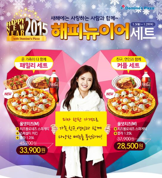 [아시아경제 김소연 기자]도미노피자가 새해를 맞아 ‘해피뉴이어 세트’를 출시하고 할인 판매를 진행한다고 5일 밝혔다.이번에 출시한 ‘해피뉴이어 세트’는 패밀리세트와 커플세트 메뉴 2종이다. 우선, 패밀리세트는 올댓치즈피자, 스페셜티치킨, 치즈 볼로네즈 스파게티, 콜라로 구성됐으며 올댓치즈피자 한 판 가격인 3만 3900원에 4가지 메뉴를 모두 즐길 수 있다. 또한, 커플세트는 올댓치즈피자, 치즈볼로네즈 스파게티, 콜라로 구성된 메뉴로 정상가 보다 약 25% 할인된 2만8500원에 판매한다.해피뉴이어 세트 판매 기간은 오는 29일까지이며 온라인(홈페이지, 모바일웹, 앱)뿐만 아니라 전화 주문시에도 모두 적용 가능하다. 이와 함께 더블치즈엣지 등 프리미엄 피자 주문 시 치킨 사이드디쉬 3종(갈릭&허브윙스, 크리스피 치킨텐더, 스페셜티 치킨)을 반값에 제공하는 사이드디쉬 반값 프로모션도 진행한다. 도미노피자 관계자는 “이번에 출시한 해피뉴이어 세트는 실속 있는 구성의 세트메뉴로 여럿이 모여 푸짐하게 즐기기에 적합하다”며 “새로운 한 해를 시작하는 1월을 맞아 가족, 연인과 함께 즐겁고 행복한 외식을 즐기시기를 바란다”고 전했다. 김소연 기자 nicksy@asiae.co.kr<ⓒ세계를 보는 창 경제를 보는 눈, 아시아경제(www.asiae.co.kr) 무단전재 배포금지>