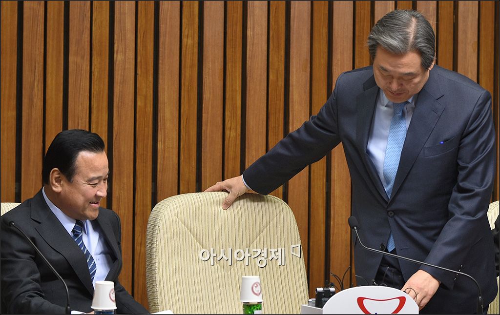 [아시아경제 윤동주 기자] 김무성 새누리당 대표(오른쪽)와 이완구 원내대표가 9일 서울 여의도 국회에서 열린 주요당직자회의에 참석 하고 있다.윤동주 기자 doso7@asiae.co.kr<ⓒ세계를 보는 창 경제를 보는 눈, 아시아경제(www.asiae.co.kr) 무단전재 배포금지>
