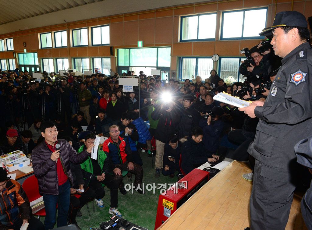 [아시아경제 백소아 기자] 11일 경기도 의정부 경의초등학교에 마련된 의정부 화재 이재민 대피소에서 김석운 의정부소방서장이 화재에 대한 브리핑을 하고 있다. 이날 피해 주민들은 소방헬기에 의한 피해 확산 의혹에 대해 해명을 요구했다.백소아 기자 sharp2046@asiae.co.kr<ⓒ세계를 보는 창 경제를 보는 눈, 아시아경제(www.asiae.co.kr) 무단전재 배포금지>