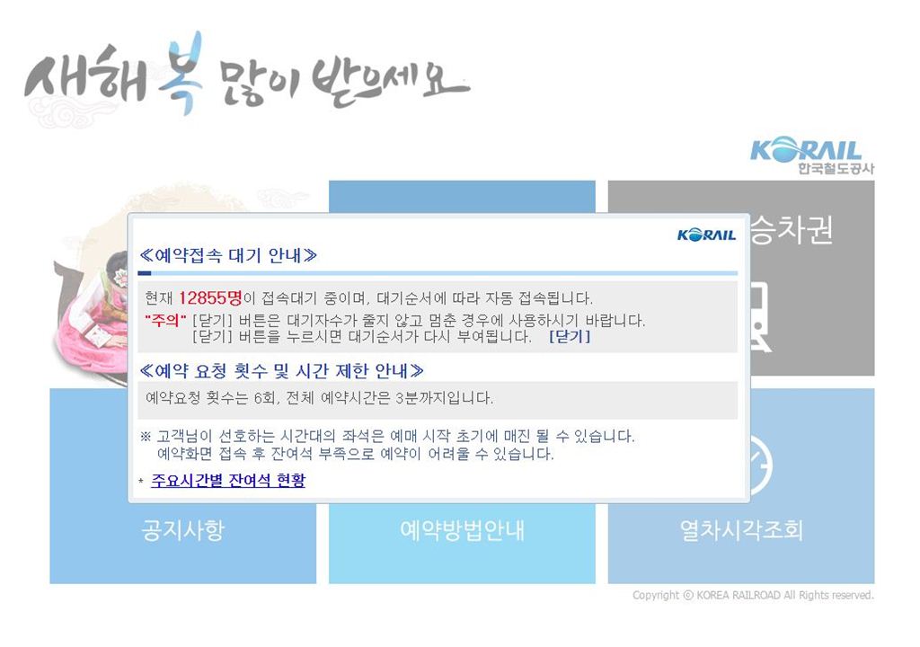 코레일 홈페이지 접속 대기 현황 사진=홈페이지 캡쳐