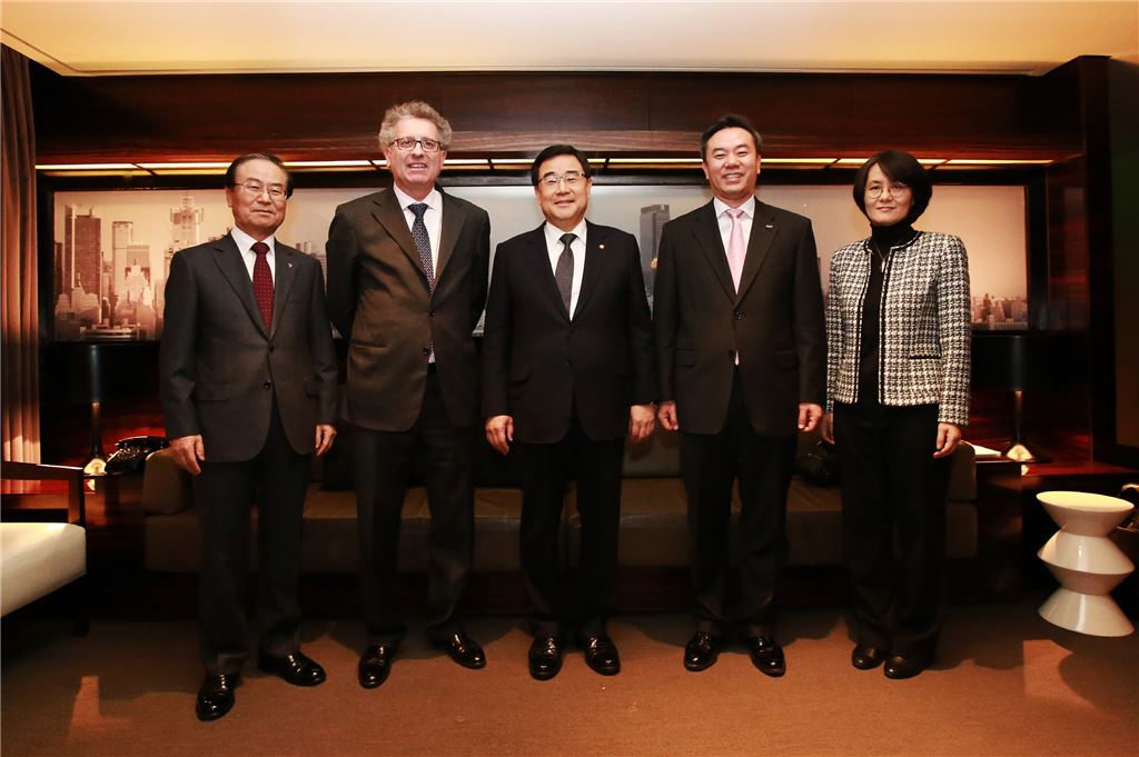 왼쪽부터 박종수 금융투자협회 회장, 피에르 그라메냐 룩셈부르크 재무부 장관, 김정훈 국회의원, 유재훈 한국예탁결제원 사장, 김선영 딜로이트 변호사