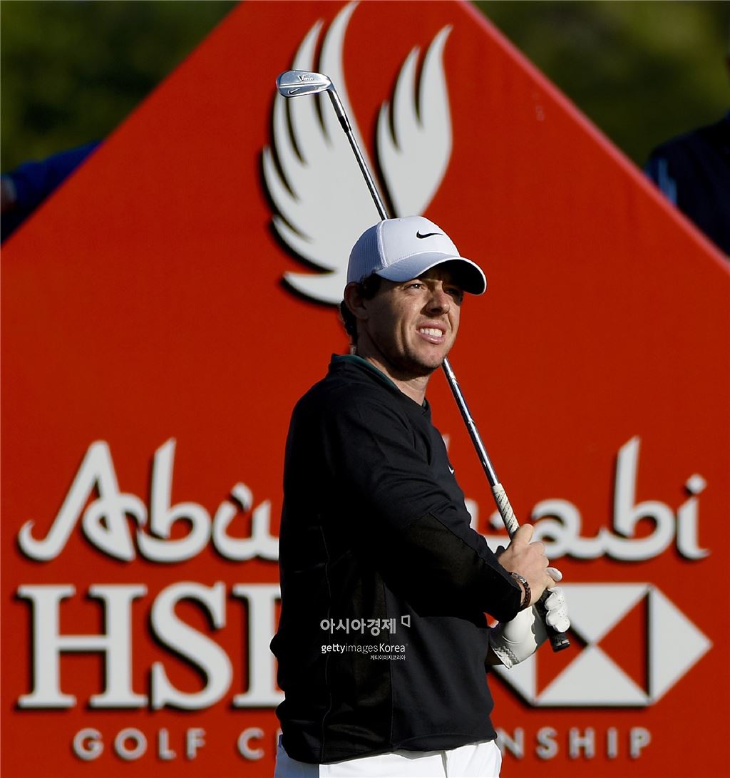 로리 매킬로이가 아부다비 HSBC골프챔피언십 첫날 샷을 한 뒤 공을 바라보고 있다. 아부다비(아랍에미리트연합)=Getty images/멀티비츠