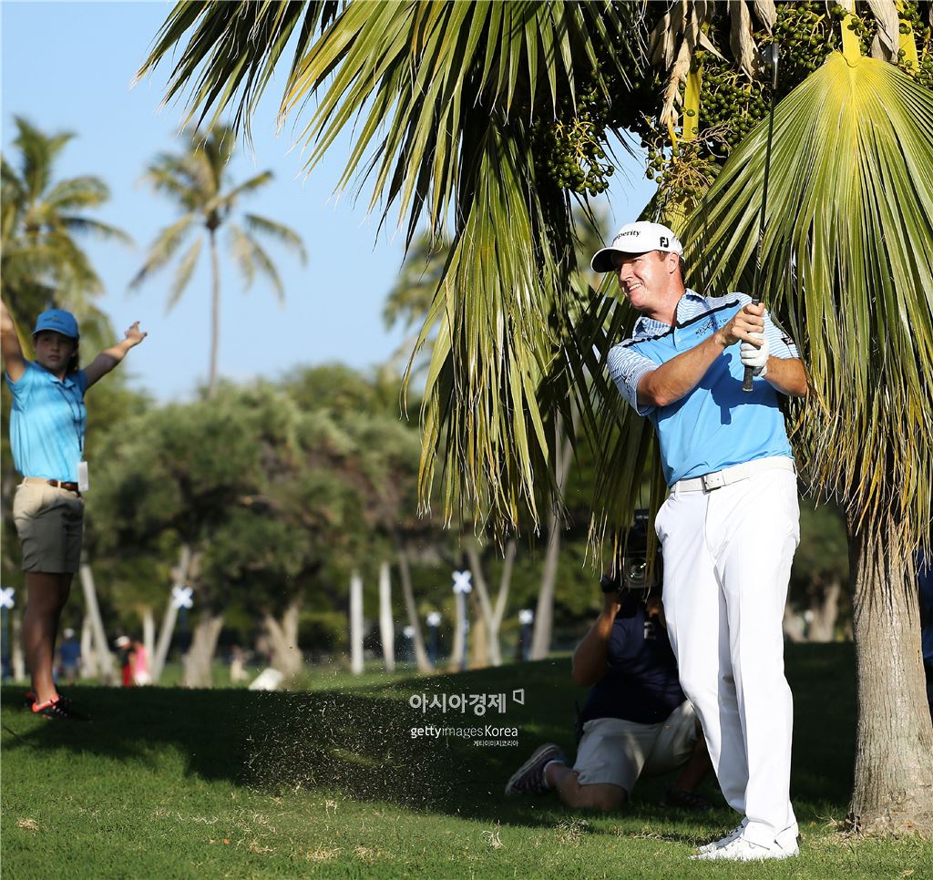 지미 워커가 소니오픈 셋째날 18번홀에서 트러블 샷을 하고 있다. 호놀룰루(美 하와이주)=Getty images/멀티비츠