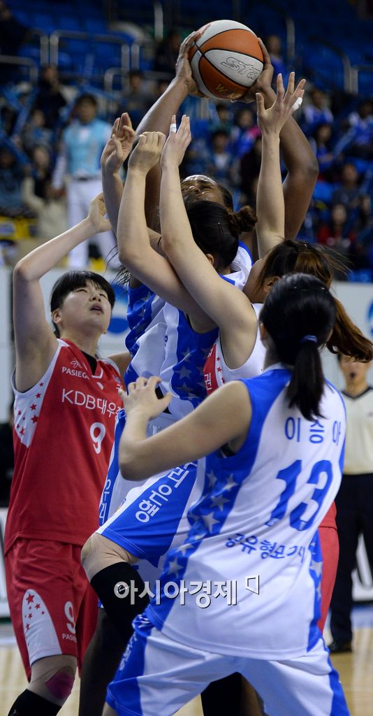 [춘천=아시아경제 김현민 기자] 여자 프로농구 우리은행과 KDB생명의 경기가 21일 춘천호반체육관에서 열렸다. 우리은행 굿렛이 상대와 리바운드를 다투고 있다. 김현민 기자 kimhyun81@asiae.co.kr<ⓒ세계를 보는 창 경제를 보는 눈, 아시아경제(www.asiae.co.kr) 무단전재 배포금지>