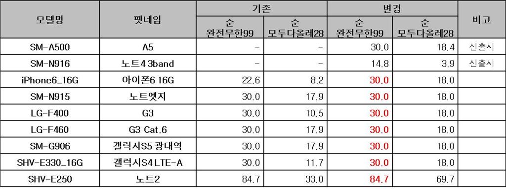 [아시아경제 권용민 기자] 22일 KT가 애플 아이폰6·LG전자 G3 등 일부 주력모델들의 지원금을 '최대'로 상향했다. 갤럭시노트2 등 구형 모델은 저가 요금제에 대한 지원도 눈에 띄게 올랐다.이날 KT는 애플 아이폰6 16GB, 갤럭시노트 엣지 등 일부 주요 모델의 공시보조금을 변경했다. 아이폰6 16GB 모델은 '순 완전무한99' 요금제 기준으로 기존 22만6000원에서 법정 최대 보조금인 30만원으로 상향 조정했다. LG전자의 G3도 같은 요금제 기준 기존 27만원에서 30만원으로 올렸다. 이 외에도 G3 캣6, 삼성 갤럭시S5 광대역LTE-A·갤럭시S4 LTE-A도 최대 한도를 유지했다.저가 요금제에 대한 지원금 인상도 눈에 띈다. 아이폰6 16GB의 경우 '순 모두다올레28' 요금제 기준 기존 8만2000원에서 18만원으로 10만원가량 올렸다. 같은 요금제 기준으로 LG전자 G3는 10만5000원에서 18만원으로, 갤럭시노트2는 33만원에서 69만7000원으로 2배 이상 상향했다.업계 일각에서는 KT의 이 같은 지원금 상향이 최근 벌어지고 있는 불법 보조금 공방의 연장선상이라는 시각을 제기하고 있다. 지금까지 지원금이 인상될 때마다 대대적인 홍보에 나섰던 KT가 이번에는 소리 소문 없이 주력 단말기를 법정 최대 수준까지 맞춘 데에는 의도가 숨어있다는 것이다.업계 관계자는 "KT가 이번에 조용히 지원금을 인상한 것은 지난 주말 SK텔레콤에 뺏겼던 가입자를 회복하고 이를 방송통신위원회의 사실조사와 엮으려는 의도"라고 강조했다. 방통위가 SK텔레콤에 대한 단독 사실조사에 착수하면서 시장이 정상화됐다는 논리를 펼치려 한다는 주장이다.이에 대해 KT 측은 "고객의 단말 구매 부담을 줄이기 위해 인기모델 중심으로 지원금을 상향했다"며 "앞으로 통신비 절감에 선도적으로 나서 적극 기여할 것"이라고 일축했다.한편 SK텔레콤과 KT의 과다 판매수수료(리베이트) 지급 공방문제는 2라운드에 돌입할 전망이다. 방통위가 SK텔레콤에 대한 단독 사실조사에 착수하기로 하면서 이에 반발한 SK텔레콤이 KT와 LG유플러스에 대한 불법영업 사례에 대한 사실조사 신고서를 21일 제출하면서다.앞서 방통위는 지난 16일 이통 3사 팀장급 회의를 소집, 17일 임원들까지 소집해 경고했음에도 장려금 수준이 평소(30만원 미만)보다 20만~25만원 높게 계속 유지되는 등 시장 과열상황이 계속돼 이에 대한 현장 실태점검을 지난 19일부터 실시한 바 있다. 방통위 관계자는 "이번 SK텔레콤에 대한 단독조사는 첫 번째 사례로 그동안 불법 보조금 등 위반 여부에 대해 이통 3사 공동조사가 관행적으로 이뤄져왔다"며 "공동조사로 이통사 간 지루한 공방이 이어지고 실효성에 의문이 제기되면서 이번부터 단독으로 조사하게 됐다"고 조사 배경을 설명했다.권용민 기자 festym@asiae.co.kr<ⓒ세계를 보는 창 경제를 보는 눈, 아시아경제(www.asiae.co.kr) 무단전재 배포금지>