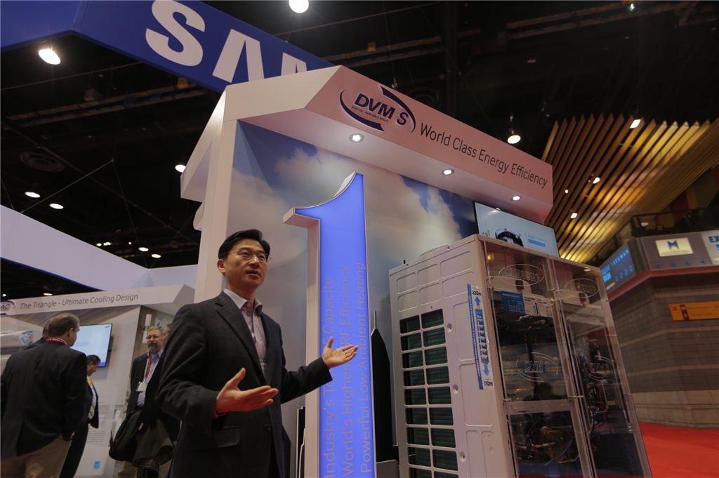 [아시아경제 권해영 기자] 삼성전자와 LG전자가 26~28일(현지시간) 미국 시카고에서 열리는 세계 최대 규모의 공조전시회 'AHR 엑스포 2015'에서 최첨단 공조기기를 선보이며 북미 시장 판매 확대에 나선다. AHR엑스포는 1930년부터 시작해 세계 130여 국가, 1900여 업체가 참가하고 3만여 명이 관람하는 냉난방 공조 전문 전시회다.삼성전자는 '세계 최대 용량' 시스템에어컨, LG전자는 '고효율' 시스템에어컨을 선보인다.삼성전자가 새롭게 선보이는 'DVM S'는 대용량에 적합한 압축기와 신규 유로를 적용한 최적의 열교환 시스템을 구축해 모듈형 VRF 시스템에어컨 중 세계 최대 수준인 16톤의 용량을 갖췄다. 기존보다 실외기 설치 공간은 약 40% 줄여 건축물의 공간을 효율적으로 사용할 수 있고 건축물에 미치는 하중은 약 30% 줄여 안전성을 확보했다. 겨울철 저온 난방시 냉매 순환량을 약 25% 증가시켜 영하 25도의 혹한에서도 정상적인 운전이 가능하다.사물인터넷(IoT) 기반의 스마트홈 시연 코너를 별도로 만들고 수냉식으로 외부 온도에 상관없이 고효율을 유지하는 시스템에어컨 'DVM S 워터'와 '덕트형 에어컨', '원격 통합 에너지 관리 시스템' 등을 전시한다.-