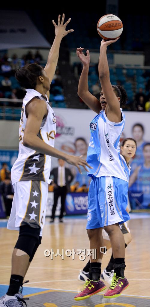 [부천=아시아경제 김현민 기자] 여자 프로농구 하나외환과 KB스타즈의 경기가 28일 부천체육관에서 열렸다. 하나외환 토마스가 상대 비키바흐의 수비를 뚫고 공격하고 있다. 김현민 기자 kimhyun81@asiae.co.kr<ⓒ세계를 보는 창 경제를 보는 눈, 아시아경제(www.asiae.co.kr) 무단전재 배포금지>