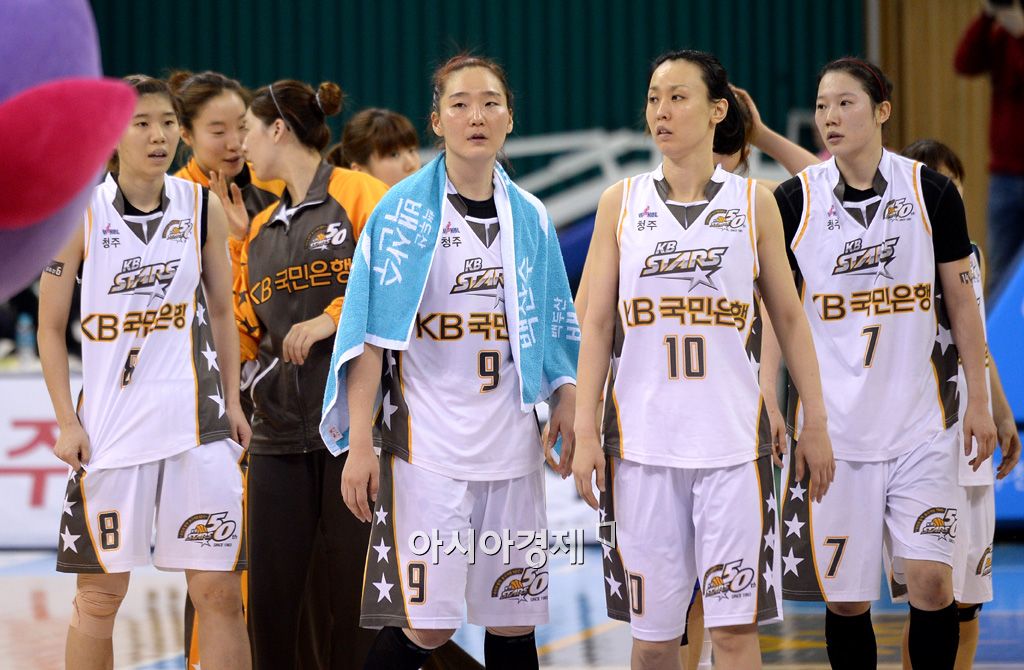 [부천=아시아경제 김현민 기자] 여자 프로농구 하나외환과 KB스타즈의 경기가 28일 부천체육관에서 열렸다. 58-68로 패하며 6연승 행진을 마감한 KB 선수들이 코트를 나서고 있다. 김현민 기자 kimhyun81@asiae.co.kr<ⓒ세계를 보는 창 경제를 보는 눈, 아시아경제(www.asiae.co.kr) 무단전재 배포금지>