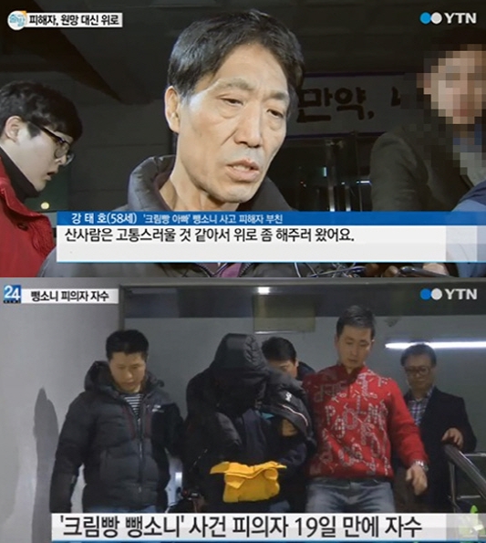 '크림빵 아빠' 피해자 아버지, "자수한거 정말 고마워…가족도 있을텐데"[아시아경제 온라인이슈팀]'크림빵 아빠' 뺑소니 사건의 용의자가 자수한 가운데 사망한 피해자의 아버지 인터뷰가 국민들의 관심을 받고 있다.청주 흥덕경찰서에 따르면 '크림빵 뺑소니' 사건의 유력 용의자는 29일 오후 11시8분쯤 경찰서 후문을 통해 강력계 사무실로 직접 찾아와 자수했다.'크림빵 아빠' 뺑소니 사건이 발생한 이후 숨진 아들의 억울한 사망에 용의자의 자수를 누구보다도 절실히 기다렸던 피해자 아버지는 용의자의 자수 소식을 전해 듣고 경찰서를 방문했다. 피의자 A씨가 자수 의사를 밝힌 29일 저녁 흥덕경찰서를 찾아 온 피해자 아버지는 의외로 담담한 모습을 보였다.그는 A씨가 자수한 것에 대해 "가족이 너무나 고마워했다"고 말문을 열었다.그는 이어 "잡히지 말고 자수하기를 신께 간절히 기도했다"며 "언론을 통해 자수했다는 소식을 듣고 식구들이 모두 박수를 보냈다"고 말했다.그는 오히려 위로받아야 할 자신보다 아들을 사지로 내몬 A씨를 더 걱정하는 모습도 보여 감동을 자아냈다.피해자 아버지는 "원망은 처음부터 하지 않았다"며 "그 사람도 한 가정의 가장일 텐데. 우리 애는 땅속에 있지만 그 사람은 이제 고통의 시작"이라고 전했다.이어 그는 "가족도 있을 텐데 그 사람은 더 고통스러울 것"이라고 거듭 말한 뒤 "정말 (자수를)잘 선택했고 너무 걱정하지 말라고 이야기하고 싶다"고 덧붙였다.온라인이슈팀 issue@asiae.co.kr<ⓒ세계를 보는 창 경제를 보는 눈, 아시아경제(www.asiae.co.kr) 무단전재 배포금지>