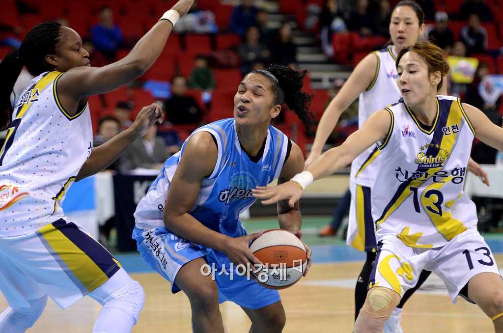 [부천=아시아경제 김현민 기자] 여자 프로농구 하나외환과 신한은행의 경기가 30일 부천체육관에서 열린다. 하나외환 토마스가 상대 샌포드의 수비를 뚫고 슛하고 있다. 김현민 기자 kimhyun81@asiae.co.kr<ⓒ세계를 보는 창 경제를 보는 눈, 아시아경제(www.asiae.co.kr) 무단전재 배포금지>