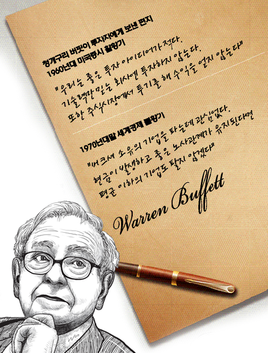 60년대 전문가들 장밋빛 전망에도 신중 신기술 무장한 전기전자기업은 외면섬유·의류·가구·보험 등에 지속투자 [아시아경제 임철영 기자, 김민영 기자, 주상돈 기자, 김보경 기자] 워런 버핏은 주식시장의 활황과 불황을 효과적으로 활용했다. 투자의 귀재라는 별명이 붙은 이유 중 하나는 그가 투자를 중단해야 할 시점과 늘려야 할 시점을 명확하게 판단했기 때문이다. 그 판단은 다른 투자가나 시장분석가의 의견과 배치되는 경우가 많았다.그는 다른 사람들과 반대로 결단을 내렸고, 그 결단은 자신에게 큰 전환점이 됐다. 활황으로 주식시장이 과열됐던 시기에 버핏은 추가 투자보다는 기존 사업구조를 재편했다. 또 버핏이 최고의 수익률을 기록했던 시기는 주식시장이 침체에 빠지기 시작한 1975년 이후였다. 1975년 이후 10년간 버크셔 해서웨이의 연평균 수익률은 32%에 달했다. 최고 수익률은 40%, 최저 수익률은 13%였다. 같은 기간 스탠더드앤드푸어스(S&P)지수의 연평균 수익률은 16%에 불과했다. ◆활황을 대하는 태도 '신중ㆍ속도 조절'= 1966년 다우존스 산업평균지수는 전고점을 경신해 역사상 처음으로 1000포인트를 돌파하기도 했다. 미국은 1960년부터 시작한 베트남전쟁으로 경기부양 효과를 누렸고, 시장전문가들의 장밋빛 전망에 덩달아 오르기 시작한 주식시장에는 개인투자자들이 몰려들었다. 증시에 사람들이 몰리면서 1950년에 200만주가량이던 거래량은 1967년 1000만주까지 폭증했다.하지만 버핏은 이 시기에 돌연 자신이 운영하는 투자조합에 조합원을 더 이상 모집하지 않겠다고 선언했다. 그는 조합원에게 "우리는 좋은 투자 아이디어를 많이 가지고 있지 않다"고 언급한 편지를 보냈다. 신기술로 무장한 제록스를 비롯해 트랜지트론, 폴라로이드 등 전기전자기업도 우후죽순 시장에 진입했으나 그에게는 매력적이지 않았다.섬유, 의류, 가구, 보험 등 고전적인 투자에 집중해왔던 버핏은 전기전자기업에 쏠리는 시장의 모습을 우려하면서 되레 자신이 운영하던 조합에 두 가지 투자원칙을 추가했다. 추가된 투자원칙은 ▲기술이 투자결정에 결정적인 요소로 작용하는 회사에는 투자하지 않고 ▲예상 수익률이 눈부시더라도 인간의 삶에 심각한 문제를 발생할 수 있을 것 같은 행위나 활동에는 투자하지 않겠다는 것이었다. 그는 대신 투자자들의 관심에서 멀어져 있던 보험회사에 관심을 가졌다. 그는 홈 인슈어런스의 주식을 샀고 내셔널 인뎀니티 인수에 열을 올렸다.개별 주식가격의 상승세가 계속됐지만 버핏은 신중한 입장을 바꾸지 않았다. 그는 1968년 조합원들에게 보내는 편지에서 '과거에는 투자관리 업계가 지나치게 정체돼 있었지만 분(分) 단위로 주식을 연구해야 한다는 투자관리인이 나올 정도로 매우 투기적인 상황'이라고 진단했다. 더불어 그는 시장을 쫓아 투기를 하지 않는다는 원칙을 고수하며 단기 주가에 지나치게 관심을 갖는 조합원들에게 "우리는 주식시장에서 투기를 해 수익을 얻으려 하지 않는다"며 일침을 놓기도 했다.버핏은 결국 1969년 자신의 투자조합을 해산했다. 자신의 조합이 한때 수익률이 수백%에 달했던 뮤추얼펀드의 실적을 앞서야 한다는 압박감에서도 벗어나고 싶었다. 그는 "저는 이런 환경에 익숙하지 않습니다. 그리고 저는 영웅 행세를 하기 위해 제가 모르는 게임 때문에 과거의 좋은 실적을 망치고 싶지 않습니다. 속도를 늦추는 유일한 길은 중단하는 것입니다"고 발표했다.버핏 투자조합이 해산된 이후에도 얼마간 1000포인트를 웃돌던 다우지수는 1년 만인 1970년 거래되던 거의 모든 주식의 가격이 반값으로 떨어졌다. 주식시장은 장기간 침체기에 들어갔다. 1971년 포드재단 이사장이었던 맥조지 번디는 "6년 동안 저는 많은 교훈을 얻었습니다. 1960년대 중반 우리는 너무 쉽게 많은 투자를 했습니다. 주식에서 장기적인 고수익이 날 것으로 예상했습니다. 당시에는 이것이 과거 15년 동안의 일반적인 패턴이라고 생각했으나 지난 6년간은 달랐습니다"고 고백했다.70~80년대 세계경제 흔들렸을 땐 오히려 낙관적 포트폴리오 드러내 투자기업 재무개선·원자재에 추가투자 ◆불황을 대하는 태도 '구조 개선ㆍ장기 보유'= "미래는 결코 확실하지 않다. 주식시장에서 듣기 좋은 여론에 귀 기울였다가는 큰 대가를 치르게 될 것이다. 불확실성은 장기적으로 가치를 사는 사람에게 친구다."버핏이 이와 같은 언급을 한 시기는 1979년이다. 과열된 주식시장에 대한 우려를 나타내며 투자조합을 해산한 지 꼭 10년 만이다. 1979년은 제2차 석유파동으로 전 세계가 심각한 불황에 빠졌던 때다. 미국은 1973~1975년 제1차 석유파동에 이어 1980~1982년 제2차 석유파동으로 더블딥 후유증에 시달렸다.