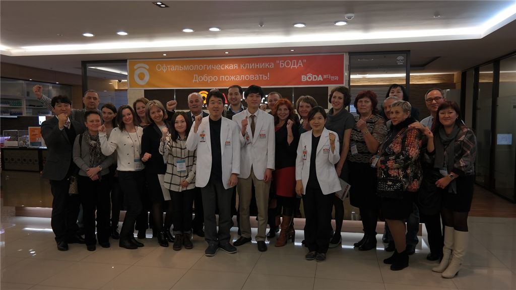대전 보다안과를 찾은 외국바이어, 의료관광객들이 기념사진을 찍고 있다.