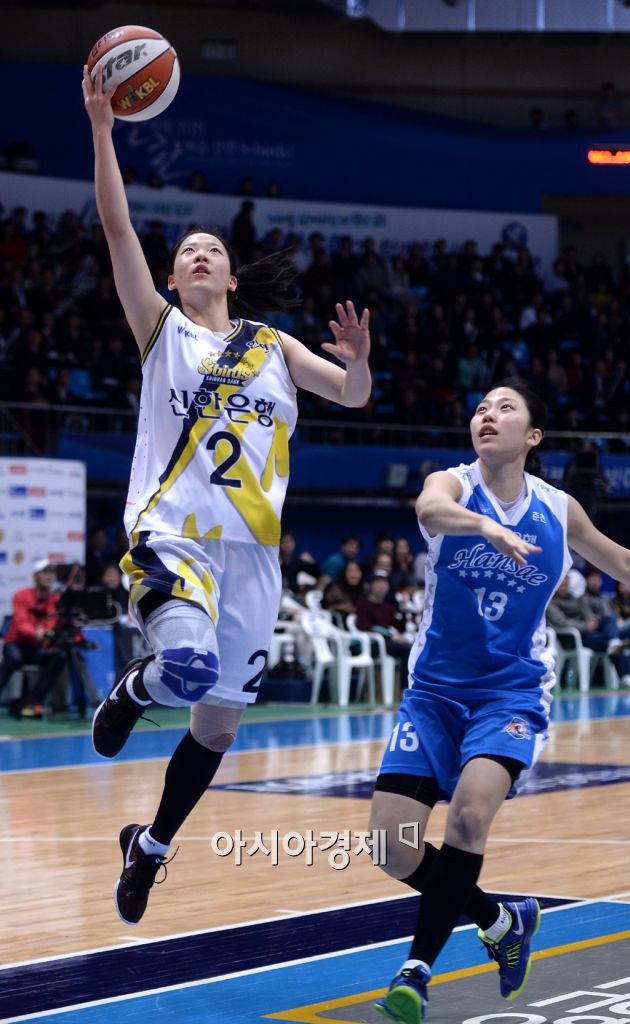 [인천=아시아경제 김현민 기자] 여자 프로농구 인천 신한은행과 춘천 우리은행의 경기가 5일 인천 도원체육관에서 열렸다. 신한은행 김규희가 상대 이승아의 수비를 뚫고 공격하고 있다. 김현민 기자 kimhyun81@asiae.co.kr<ⓒ세계를 보는 창 경제를 보는 눈, 아시아경제(www.asiae.co.kr) 무단전재 배포금지>