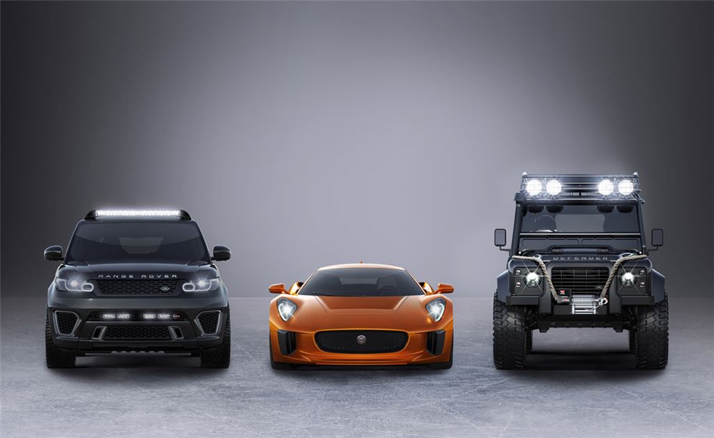 영화 007 스펙터에 출연할 재규어 랜드로버 스페셜 모델. 사진 왼쪽부터 레인지로버 스포츠 SVR, 재규어 C-X75, 랜드로버 디펜더 빅풋.