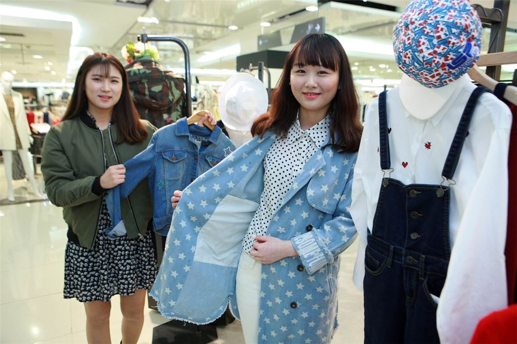 11일 AK플라자 구로본점에서 모델들이 데님 소재의 재킷, 오버롤, 항공점퍼, 물방울무늬 블라우스 등 올 봄 유행할 복고 트렌드의 패션 아이템을 선보이고 있다.