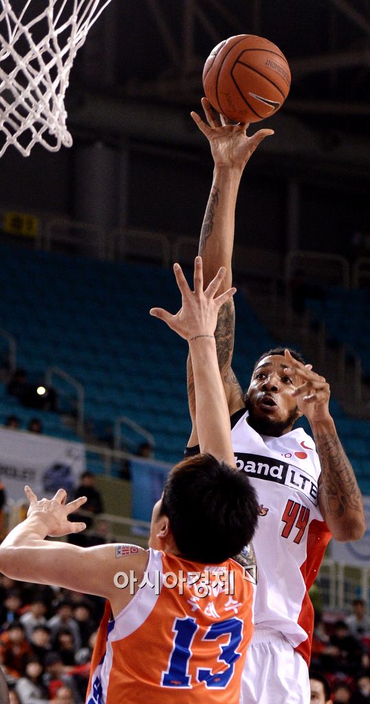 [인천=아시아경제 김현민 기자] 프로농구 인천 전자랜드와 서울 SK의 경기가 11일 인천 삼산월드체육관에서 열렸다. SK 심스가 상대 주태수의 수비를 뚫고 공격하고 있다. 김현민 기자 kimhyun81@asiae.co.kr<ⓒ세계를 보는 창 경제를 보는 눈, 아시아경제(www.asiae.co.kr) 무단전재 배포금지>