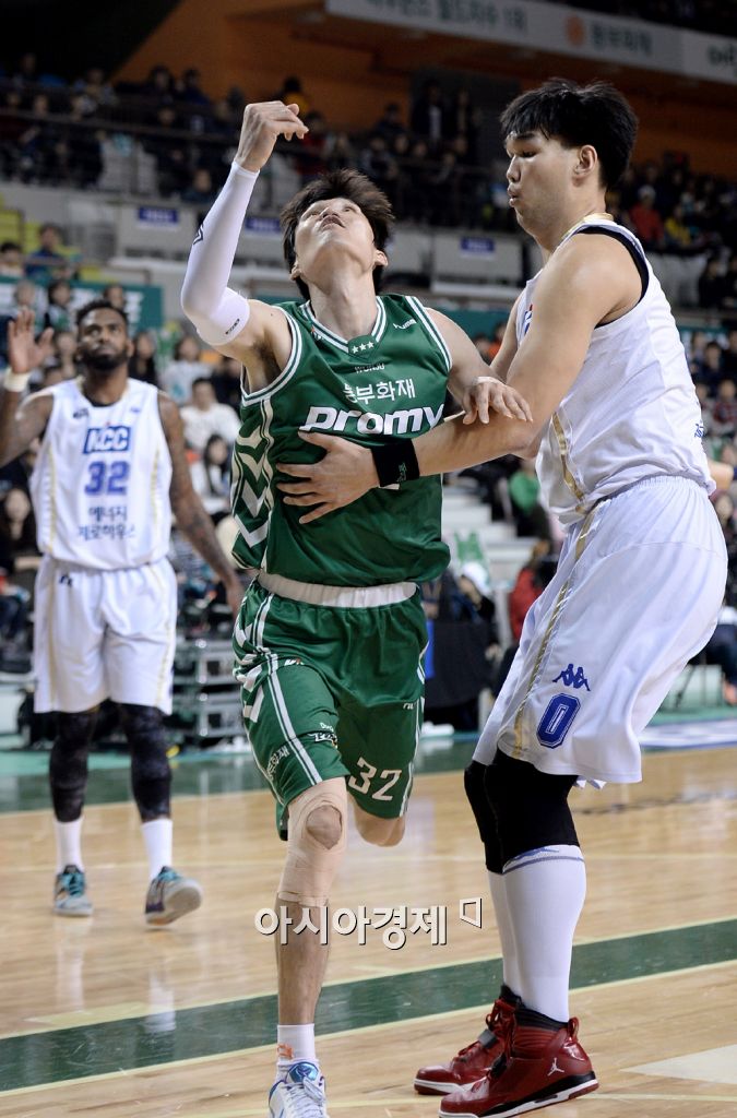 [원주=아시아경제 김현민 기자] 프로농구 원주 동부와 전주 KCC의 경기가 15일 원주종합체육관에서 열렸다. KCC 하승진이 파울 휘슬이 울린 뒤 바스켓카운트를 노리는 상대 김주성을 잡아주고 있다. 김현민 기자 kimhyun81@asiae.co.kr<ⓒ세계를 보는 창 경제를 보는 눈, 아시아경제(www.asiae.co.kr) 무단전재 배포금지>