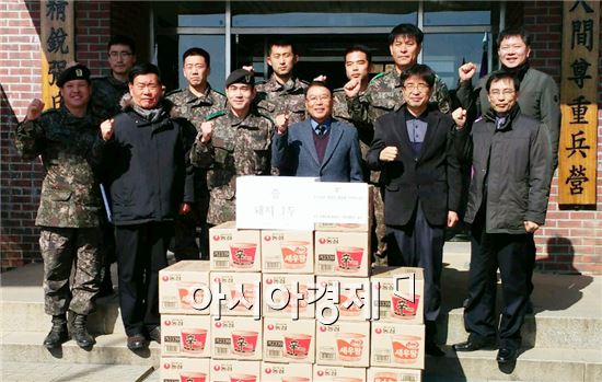 " 지난해 10월 후견인 결연식 후속조치로 지속적인 위문행사 계획"[아시아경제 노해섭 기자]순천시보훈단체협의회(회장 정정길)는 민족최대의 명절인 설을 앞두고 육군 제7391부대를 찾아 돼지 한 마리와 컵라면 등을 증정하고 군 장병들을 위문격려 했다. 이날 부대위문은 지난해 10월 10일 제66주년 국군의 날을 기념해 병사들의 사기진작을 위해 보훈단체 예비역과 현역장병이 상호 후견인 결연식 체결후 이루어진 후속조치로 지속적인 군부대의 장병들과 소통하고 그들의 성공적인 국방의 의무를 돕기 위해서 마련이 되었다. 특히 이날 위문은 예비역 ROTC 7기 해병대 중위로 전역 후 순천종돈장을 운영하고 있는 황금영(전남새마을회) 회장이 친환경으로 키운 돼지를 기증하였으며, 순천시보훈단체협의회에서도 병사들의 간식용 컵라면을 20여 박스를 기증하여 설 명절을 앞두고 병사들의 사기진작에 큰 도움이 되었다. 정정길 협의회장은 “지난해 전국에서 처음으로 군 장병들과 후견인 결연식후 자주 찾아보질 못했다면서 이제 며칠 남지 않은 민족의 최대 명절인 설을 앞두고 고향에 가지 못하고 국토방위에 애쓰는 군 장병들을 위문하게 된 것이라면서 앞으로 지속적인 후견인으로 그 역할을 다 하겠다”고 군장병을 격려했다. 한편 육군 제 7391부대 5대대장(중령 김유신)은 “오늘 순천시보훈단체협의회에서 잊지 않고 설 명절을 앞두고 위문품과 함께 찾아주어 감사하다면서 오늘의 격려를 잊지 않고 열심히 노력하여 국민들이 걱정하지 않도록 멋진 군부대 병영생활이 되도록 최선을 다 하겠다”면서 감사의 인사를 했다.또한 이번 행사를 준비한 5대대 최정식 기동대장은 “지난해 처음으로 보훈단체와 결연 후 병사들의 사기가 크게 진작이 되었다면서 앞으로 순천시보훈단체와 군부대간의 지속적인 결속으로 병사들에게 큰 힘이 되었으면 좋겠다”고 했다.이에 순천시보훈단체협의회 관계자는 “앞으로 지속적인 군부대와의 유대강화로 군 간부들과 병사들의 사기진작을 위해서 지속적인 위문행사를 펼쳐갈 것이라”고 했다.노해섭 기자 nogary@<ⓒ세계를 보는 창 경제를 보는 눈, 아시아경제(www.asiae.co.kr) 무단전재 배포금지>
