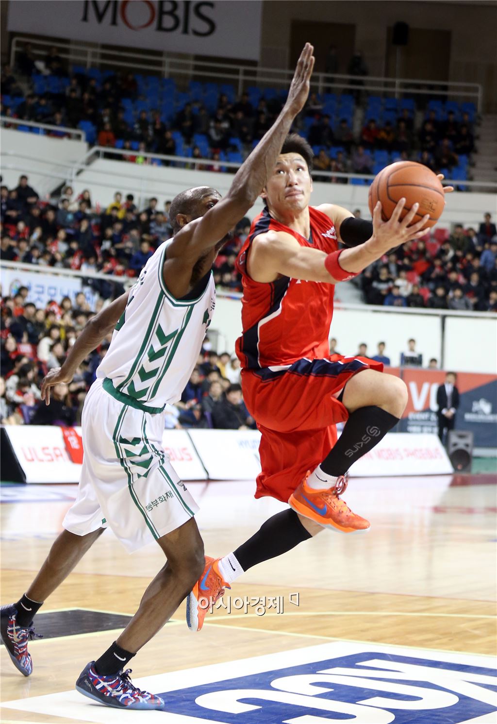 [아시아경제 이종길 기자]울산 모비스가 정규시즌 우승에 성큼 다가섰다. 울산동천체육관에서 23일 열린 2014-2015 KCC 프로농구 정규리그 경기에서 8연승을 달리던 원주 동부를 82-73으로 이겼다. 최근 연패를 두 경기에서 마감, 시즌 서른여섯 번째 승리(14패)를 챙겼다. 공동 선두였던 동부를 한 경기 차로 따돌리고 단독 선두. 그 중심에는 간판 가드 양동근이 있었다. 37분33초를 뛰며 19득점 3도움을 기록했다. 함지훈(14점), 문태영(11점), 리카르도 라틀리프(11점) 등도 두 자릿수 득점 대열에 합류하며 힘을 보탰다. 동부는 김주성과 앤서니 리처드슨이 나란히 17점씩을 넣었지만 막판 집중력이 크게 흔들렸다. 4쿼터 초반 67-65 역전을 이뤘지만 이내 함지훈에게 3점슛을 맞았다. 이어진 공격에선 함지훈에게 가로채기를 내줬고, 바로 라틀리프에게 자유투를 허용했다. 순식간에 뒤바뀐 흐름의 마침표는 양동근이 찍었다. 3점슛 두 개를 꽂아 점수 차를 13점(80-67)까지 벌렸다. 이어진 공격에서 함지훈이 공격 리바운드를 잡고 미들슛까지 넣어 그대로 승리를 확정졌다. 유재학 모비스 감독은 “선수들이 침체됐던 분위기를 깨고 선전해 대견하다”고 했다. 승인으로는 함지훈과 이대성(8득점 4리바운드)을 꼽았다. 그는 “최근 공격에서 주요선수들에 대한 편중이 심해져 체력적 문제가 생겼는데 두 선수가 컨디션을 회복한 덕에 문제가 어느 정도 해소됐다”고 했다.이종길 기자 leemean@asiae.co.kr<ⓒ세계를 보는 창 경제를 보는 눈, 아시아경제(www.asiae.co.kr) 무단전재 배포금지>