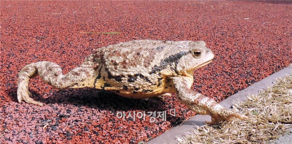 겨울잠을 자던 동물들이 땅위로 나오려고 꿈틀거린다는 경칩(驚蟄)을 10여일 앞둔 24일 전남 함평자연생태공원에서 두꺼비 한 마리가 세상 밖이 궁금했나 도로변으로 나와 발걸음질을 하고 있다.