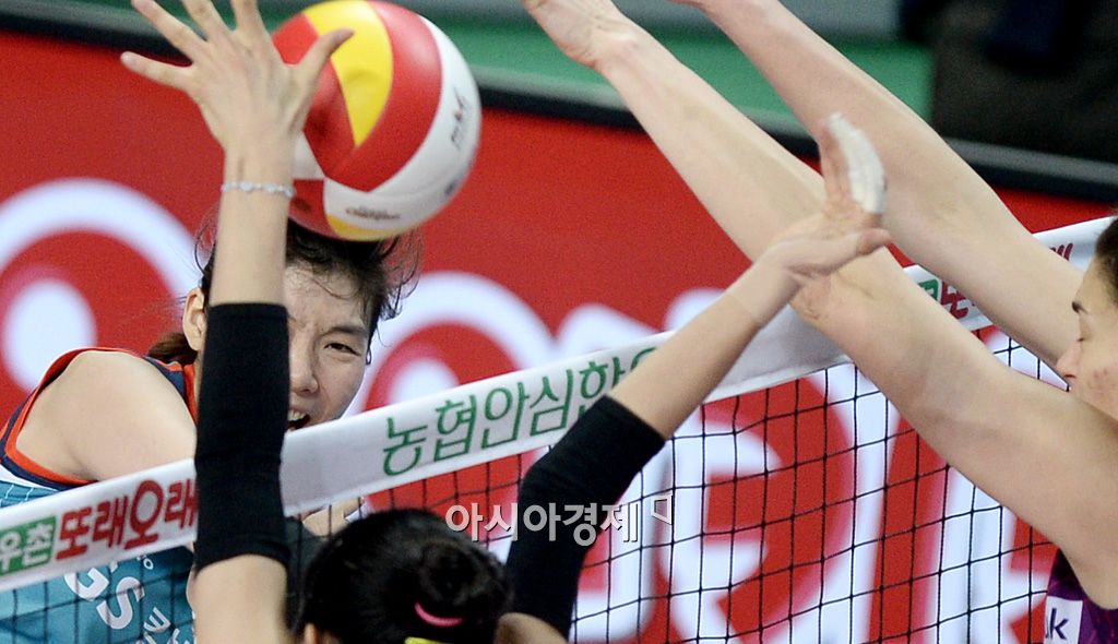 [장충=아시아경제 김현민 기자]여자 프로배구 GS칼텍스와 흥국생명의 경기가 1일 장충체육관에서 열렸다. GS칼텍스 이소영이 상대 블로킹을 뚫고 공격을 하고 있다. 김현민 기자 kimhyun81@asiae.co.kr<ⓒ세계를 보는 창 경제를 보는 눈, 아시아경제(www.asiae.co.kr) 무단전재 배포금지>김현민 사진기자 kimhyun81@asiae.co.kr<ⓒ아시아 대표 석간 '아시아경제' (www.newsva.co.kr) 무단전재 배포금지>