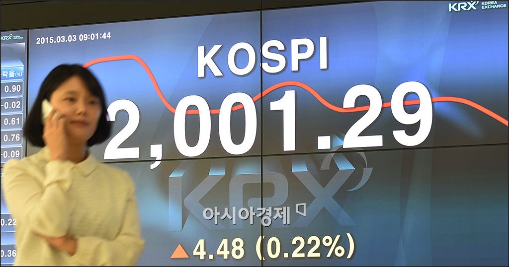 [아시아경제 윤동주 기자] 장 개장과 동시에 코스피지수가 2000선을 넘어선 3일 서울 여의도 한국거래소의 한 직원이 지수 현황판 앞을 지나가고 있다.윤동주 기자 doso7@asiae.co.kr<ⓒ세계를 보는 창 경제를 보는 눈, 아시아경제(www.asiae.co.kr) 무단전재 배포금지>