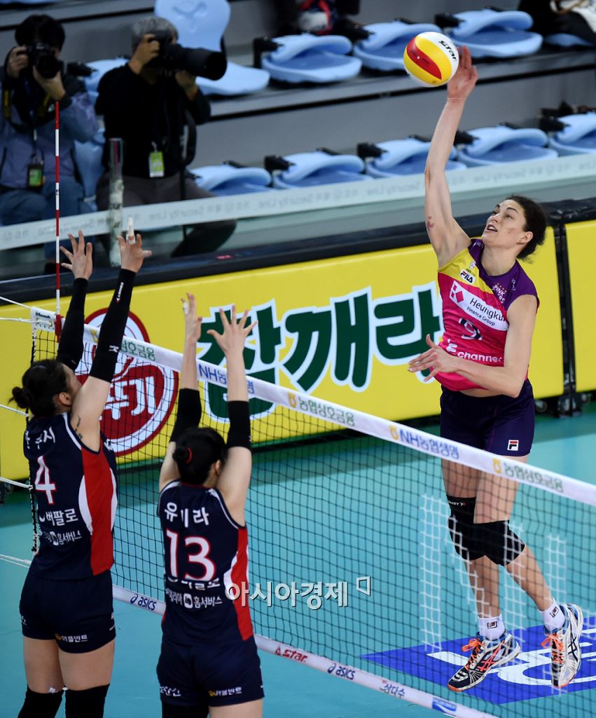 [인천=아시아경제 김현민 기자] 프로배구 V리그 여자부 흥국생명과 인삼공사의 경기가 3일 인천 계양체육관에서 열렸다. 흥국생명 루크가 상대 블로킹을 뚫고 공격하고 있다.김현민 기자 kimhyun81@asiae.co.kr<ⓒ세계를 보는 창 경제를 보는 눈, 아시아경제(www.asiae.co.kr) 무단전재 배포금지>김현민 사진기자 kimhyun81@asiae.co.kr<ⓒ아시아 대표 석간 '아시아경제' (www.newsva.co.kr) 무단전재 배포금지>