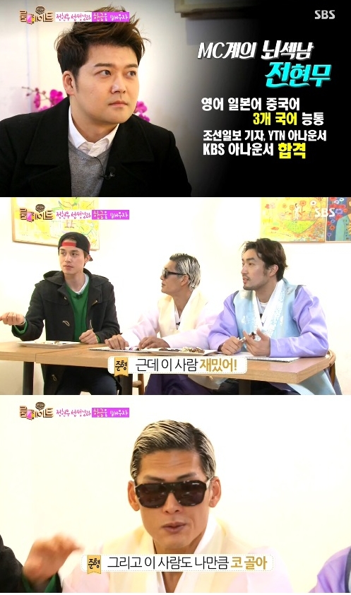 [아시아경제 온라인이슈팀 기자] '룸메이트2' 박준형이 전현무에 대한 생각을 밝혀 시청자들의 이목을 집중시켰다. 3일 오후 방송된 SBS 예능프로그램 '룸메이트2'에서는 박준형과 료헤이의 한글 선생님으로 전현무가 등장하는 모습이 그려졌다. 전현무와 친분이 있는 박준형은 전현무를 보자마자 "네가 선생이야?"라고 말해 전현무를 당황하게 만들었다. 함께 자리한 이동욱은 전현무에 대해 "예능에서 재밌는 모습을 보여주고 있지만 세 방송사를 합격한 대단한 사람이다"라고 말했다. 이에 박준형은 "근데 이 사람 재밌어"라며 "그리고 이 사람도 나만큼 코 골아" 라고 말해 폭소케 만들었다. 한편, '룸메이트2'는 최근 1인 가구가 늘고 있는 가운데 젊은이들 사이에서 새로운 주거형태로 주목받고 있는 '쉐어 하우스'를 모티브로 한 관찰 예능 프로그램이다. 온라인이슈팀 기자 issue@asiae.co.kr<ⓒ세계를 보는 창 경제를 보는 눈, 아시아경제(www.asiae.co.kr) 무단전재 배포금지>
