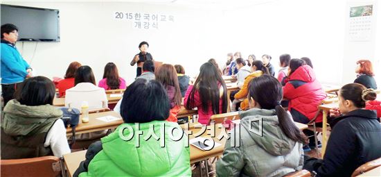“수준 별 1~4 단계 한국어 교육, 문화와 풍습에 대한 이해 돕는다”[아시아경제 노해섭 기자]장흥군다문화가정센터(센터장 최선자)는 지난 5일 다문화가족지원센터 3층에서 다문화여성 30명이 참석한 가운데 ‘한국어교육’ 개강식을 가졌다.이번 한국어교육은 결혼이민자들이 빠른 한국어를 습득을 통해 일상생활과 지역사회에 원만한 적응을 지원하기 위해 마련되었다.이날 개강식은 2015년도 한국어교육 정규 과정과 다문화가족지원센터의 연간사업에 대한 구체적인 설명으로 진행됐다. 한국어교육은 1∼4단계로 정규과정이 편성되어 각 단계별 100시간씩 맞춤형 교육을 실시하고, 의사소통 능력을 중점으로 한 회화 위주의 교육으로 진행된다.1~2단계 반은 한국어 기초와 기본적인 생활언어 및 간단한 문장 표현법을 지도하고, 3~4단계 반은 표준어와 전문적인 표현을 중심으로 의사소통 교육이 이루어진다.특히, 언어교육 교육은 물론 우리나라의 문화와 풍습에 대해 이해를 돕는 등 교육생들이 한국어뿐만 아니라 교양부문에서도 자신감을 갖도록 교육할 할 방침이라고 전했다.최선자 센터장은 “다문화가족들이 원활한 의사소통으로 건강한 가족문화를 이루고 안정적인 한국생활 정착을 돕는 데 최선을 다하겠다”고 밝혔다.노해섭 기자 nogary@<ⓒ세계를 보는 창 경제를 보는 눈, 아시아경제(www.asiae.co.kr) 무단전재 배포금지>