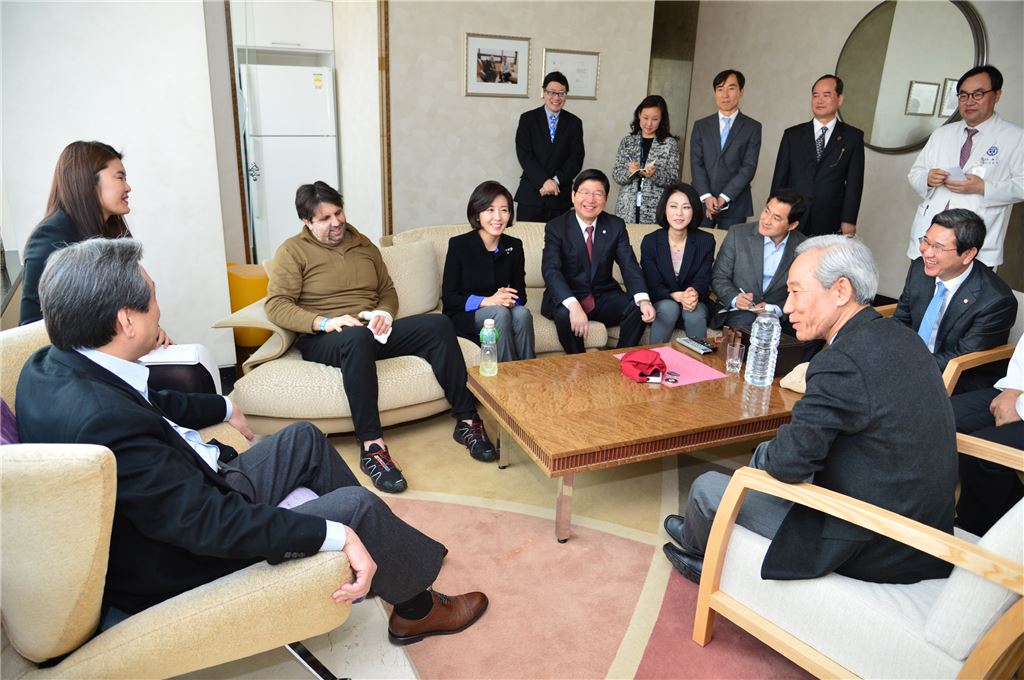 [아시아경제 홍유라 수습기자] 마크 리퍼트 주한 미국 대사가 8일 오전 신촌 세브란스병원을 찾은 김무성 새누리당 대표와 나경원, 신의진, 김학용, 박대출, 김종훈 등 의원들을 맞이하고 있다. [사진 = 연세 세브란스병원 제공]홍유라 수습기자 vandi@asiae.co.kr<ⓒ세계를 보는 창 경제를 보는 눈, 아시아경제(www.asiae.co.kr) 무단전재 배포금지>