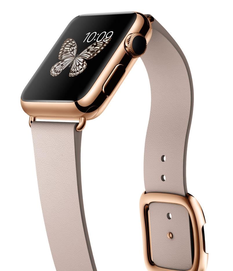 [아시아경제 온라인이슈팀] 애플이 9일(현지시간) 출시를 발표한 애플워치의 한정판 고급형 모델 '애플워치 에디션' 중 38㎜ 크기, 18K 로즈골드 케이스, 회색 가죽 재질 버클을 적용한 모델의 사진. (이미지 : 애플 공식 홈페이지)'애플워치 에디션'의 가격은 38㎜가 1만달러(약 1100만원), 42㎜는 1만2000달러(약 1300만원)다. 프레임은 옐로골드와 로즈골드 두 가지 모델이 있다.온라인이슈팀 issue@asiae.co.kr<ⓒ세계를 보는 창 경제를 보는 눈, 아시아경제(www.asiae.co.kr) 무단전재 배포금지>