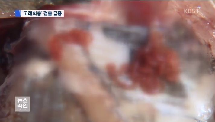KBS ‘뉴스라인’은 지난 13일 울산 앞바다에서 낚시로 잡아올린 망상어 뱃속에 길이가 5㎝에 이르는 기생충이 망상어 한 마리당 10마리 이상 발견됐다고 보도했다. 이어 이 기생충이 고래를 최종 숙주로 삼는 고래회충이라고 주장하고 사람이 고래회충에 감염된 물고기를 날것으로 먹으면 이 기생충이 위벽을 뚫고 들어가 급성통증을 일으키는 등 말썽을 부린다고 설명했다. 이에 대해 김지민 낚시 칼럼니스트는 지난 14일 페이스북에 “뉴스에서 고래회충이라고 한 벌레는 고래회충이 아니라 필로메트라라고 불리는 선모충”이라고 주장하고 고래회충 사진을 게시했다.고래회충. 사진= 낚시컬럼니스트 김지민 씨