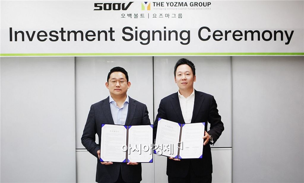 벤처연합 500V가 요즈마그룹의 요즈마벤처스와 아시아 최초로 전략적 투자협약을 체결했다고 16일 밝혔다. 사진은 김충범 500V 대표(왼쪽)와 조승현 요즈마벤처스 대표(오른쪽).