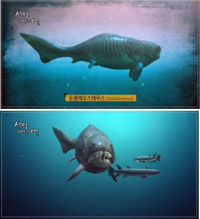 [아시아경제 온라인이슈팀] 둔클레오스테우스란 고생대 바다 어류가 네티즌들 사이에서 화제다.고생대 데본기의 대표적인 바다 어류인 둔클레오스테우스(Dunkleosteus)는 지난 1873년 미국의 지질학자이자 의사며, 작가이기도 한 뉴베리에 의해 미국 오하이오 주의 클리블랜드 셰일 층에서 최초로 발견됐다. 당시 뉴베리는 발견한 표본을 뉴베리가 지난 1868년 제안한 신속(genus)인 디니크티스(Dinichthys)에 속하는 새로운 종류로 생각해 디니크티스 테렐리(Dinichthys terrelli)로 명명하였다. 하지 그 후 자세히 연구한 결과, 디니크티스에 속하는 것으로 여겨졌던 많은 표본들이 실제로는 원래의 디니크티스와는 속(genus) 단위에서 구별되는 특징들을 갖고 있으며, 다른 여러 속으로 분류된다는 것이 밝혀졌다. 둔클레오스테우스는 갑주가 무려 5cm나 되는데다가 육식에 적합한 머리와 턱구조를 갖추었다. 특히 머리 및 몸 앞부분의 크기를 고려할 때, 전체 몸길이는 약 10미터 가량이며 몸무게는 약 4톤에 이르렀을 것으로 추정된다. 둔클레오스테우스의 머리 길이는 거의 2미터에 달하며, 골판의 두께는 약 5센티미터 가량으로 매우 두껍다.이에 둔클레오스테우스는 입을 빠르게 열어 주변의 어류를 빨아들이는 사냥법을 사용한 것으로 알려져 있으며 무는 힘이 612kg으로 추정돼 상어까지 잡아먹는 데본기 최고의 사냥꾼이었다고 전해진다. 둔클레오스테우스는 입을 1/50초 만에 열 수 있었는데, 둔클레오스테우스는 빠른 속도로 입을 열어 입 안을 순간적으로 진공 상태로 만들어, 자신의 주변에서 헤엄치던 어류들과 물을 입안으로 빨아들이는 방식으로 사냥했을 것으로 추정하고 있다. 둔클레오스테우스는 고생대 데본기 후기인 3억 8000만 년 전에 최초로 출현하여 데본기기 말인 3억 6000만 년 전에 절멸했다.온라인이슈팀 issue@asiae.co.kr<ⓒ세계를 보는 창 경제를 보는 눈, 아시아경제(www.asiae.co.kr) 무단전재 배포금지>