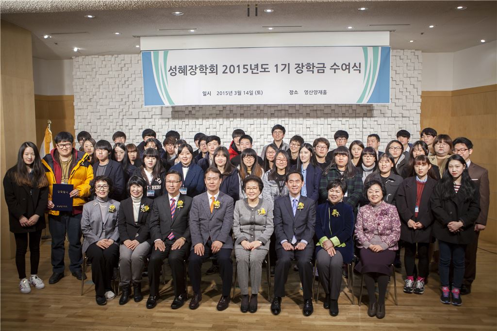 ▲ 성혜장학회 2015년도 1기 장학금 수여식 단체사진 (사진=성혜장학회)