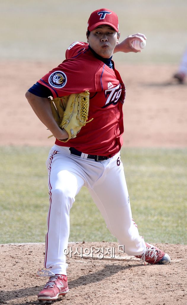 [잠실=아시아경제 김현민 기자]프로야구 2015 KBO리그 KIA 타이거즈와 두산 베어스의 시범경기가 19일 잠실구장에서 열렸다. 5회말 KIA 임기준이 역투하고 있다. 김현민 기자 kimhyun81@asiae.co.kr<ⓒ세계를 보는 창 경제를 보는 눈, 아시아경제(www.asiae.co.kr) 무단전재 배포금지>