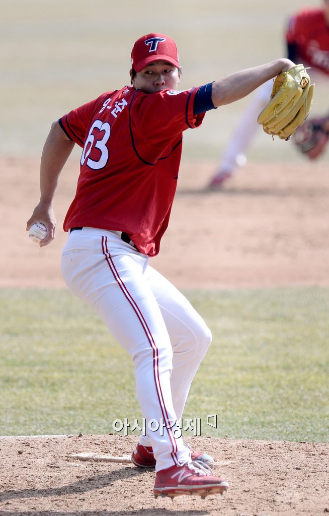 [잠실=아시아경제 김현민 기자]프로야구 2015 KBO리그 KIA 타이거즈와 두산 베어스의 시범경기가 19일 잠실구장에서 열렸다. 5회말 KIA 임기준이 역투하고 있다. 김현민 기자 kimhyun81@asiae.co.kr<ⓒ세계를 보는 창 경제를 보는 눈, 아시아경제(www.asiae.co.kr) 무단전재 배포금지>