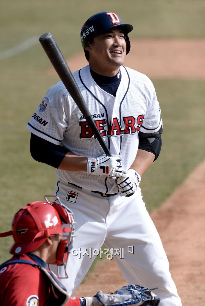 [잠실=아시아경제 김현민 기자]프로야구 2015 KBO리그 KIA 타이거즈와 두산 베어스의 시범경기가 19일 잠실구장에서 열렸다. 8회말 2사 2루에서 두산 대타 홍성흔이 삼진으로 물러나고 있다. 김현민 기자 kimhyun81@asiae.co.kr<ⓒ세계를 보는 창 경제를 보는 눈, 아시아경제(www.asiae.co.kr) 무단전재 배포금지>