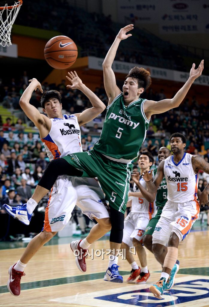 [원주=아시아경제 김현민 기자] 프로농구 원주 동부와 인천 전자랜드의 4강 플레이오프 1차전이 19일 원주종합체육관에서 열렸다. 동부 두경민이 상대 김지완의 수비를 뚫고 공격을 시도하다 공을 놓치고 있다. 김현민 기자 kimhyun81@asiae.co.kr<ⓒ세계를 보는 창 경제를 보는 눈, 아시아경제(www.asiae.co.kr) 무단전재 배포금지>