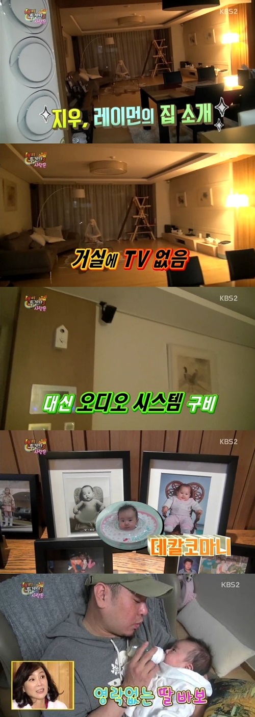 [아시아경제 온라인이슈팀] '해피투게더3' 레이먼킴이 신혼집을 공개하면서 생후 80일 된 딸을 공개했다.19일 방송된 KBS 2TV '해피투게더3'에는 '사랑꾼 특집'으로 꾸며져 배우 김성은, 심혜진, 가수 별, 타이거JK, 요리사 레이먼킴 등 스타들이 출연해 화려한 입담을 과시했다.이날 방송에서 레이먼킴은 아내 김지우와 함께 살고 있는 신혼집으로 제작진을 초대했다.김지우는 신혼집을 소개하면서 "거실에 TV가 없다. 대신 오디오 시스템을 설치해 놨다. 다 같이 음악을 들으며 이야기 하면 좋겠다는 남편의 말을 따랐다"고 말했다.김지우는 집안 곳곳에 놓여 있는 사진도 소개했다. "사진이 여기에 많다. 레이먼킴의 100일 사진, 내 100일 사진이 있다"고 설명했다.이후 레이먼킴은 태어난 지 80일된 딸과 함께한 일상을 공개했다. 레이먼킴의 딸은 깜찍한 외모로 시청자들의 시선을 사로잡았다.온라인이슈팀 issue@asiae.co.kr<ⓒ세계를 보는 창 경제를 보는 눈, 아시아경제(www.asiae.co.kr) 무단전재 배포금지>