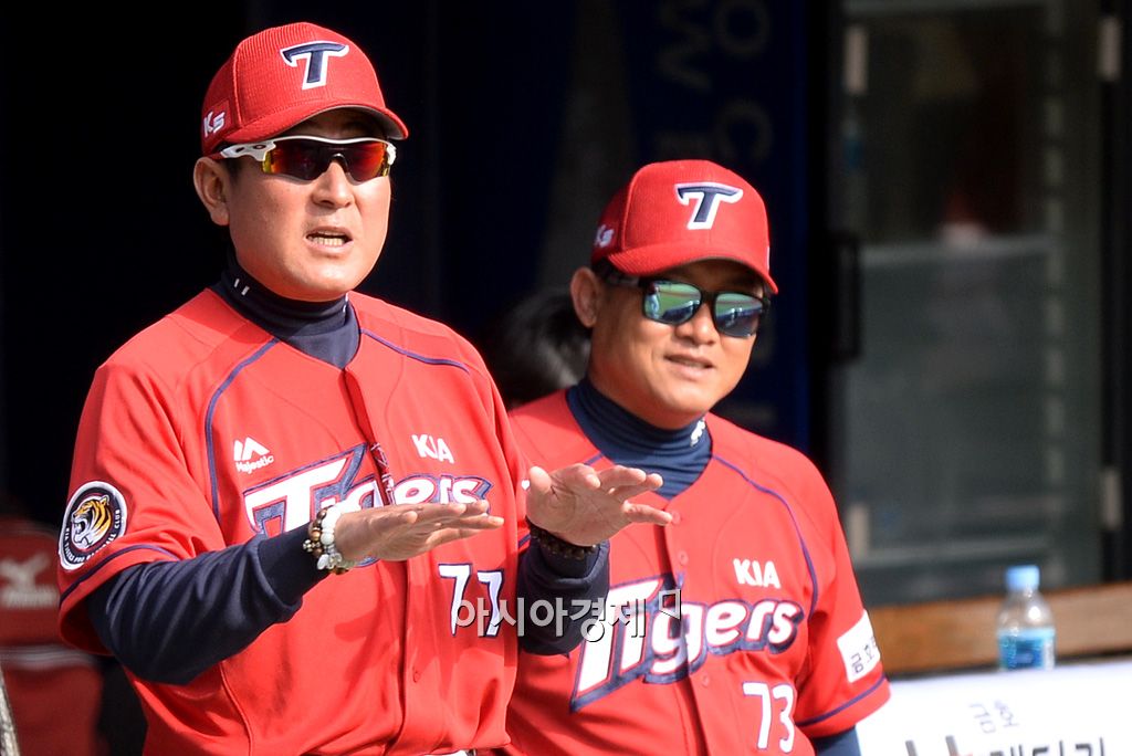 [잠실=아시아경제 김현민 기자]프로야구 2015 KBO리그 KIA 타이거즈와 두산 베어스의 시범경기가 20일 잠실구장에서 열렸다. KIA 김기태 감독이 9회초 선두타자 김주찬을 독려하고 있다. 김현민 기자 kimhyun81@asiae.co.kr<ⓒ세계를 보는 창 경제를 보는 눈, 아시아경제(www.asiae.co.kr) 무단전재 배포금지>