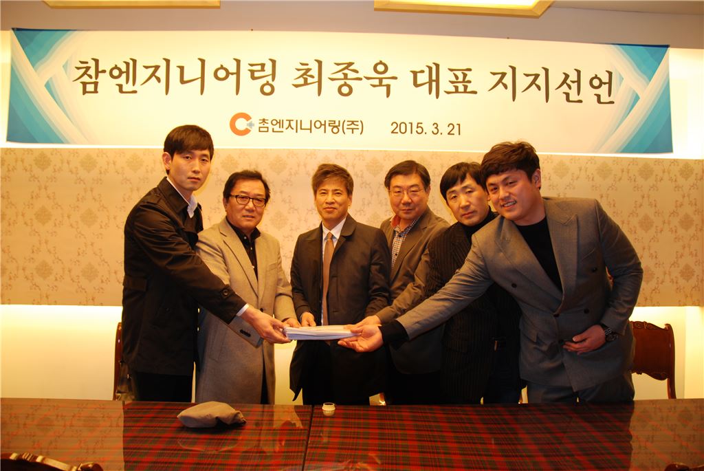참엔지니어링 소액주주들이 최종욱 대표 지지모임 선언을 하고 있다.