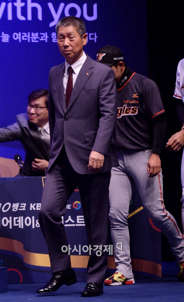 [이화여대=아시아경제 김현민 기자] 프로야구 2015 KBO리그 미디어데이가 23일 서울 서대문구 이화여대 ECC에서 열렸다. 한화 김성근 감독이 입장하고 있다. 김현민 기자 kimhyun81@asiae.co.kr<ⓒ세계를 보는 창 경제를 보는 눈, 아시아경제(www.asiae.co.kr) 무단전재 배포금지>