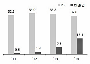 [아시아경제 온라인이슈팀] 스마트폰의 대중화로 모바일쇼핑 이용이 늘어나면서 연간 매출액이 사상 처음으로 10조원을 넘어섰다.23일 대한상공회의소에서 발간한 '2015년 유통산업백서'에 따르면 지난해 모바일쇼핑 매출액은 13조1000억원으로 집계됐다. 이는 관련 통계를 집계하기 시작한 2011년보다 무려 12조5000억원 증가한 수치다.대한상공회의소는 "모바일을 통한 검색 및 결제기능이 향상되면서 온라인쇼핑채널이 PC에서 모바일로 옮겨가고 있다"고 분석했다.실제로 지난해 PC를 통한 온라인매출은 1조8000억원 감소한 반면 모바일쇼핑 매출액은 7조2000억원 증가했다. 유통산업백서는 26일부터 인터넷(retaildb.korcham.net)을 통해 볼 수 있다.온라인이슈팀 issue@asiae.co.kr<ⓒ세계를 보는 창 경제를 보는 눈, 아시아경제(www.asiae.co.kr) 무단전재 배포금지>