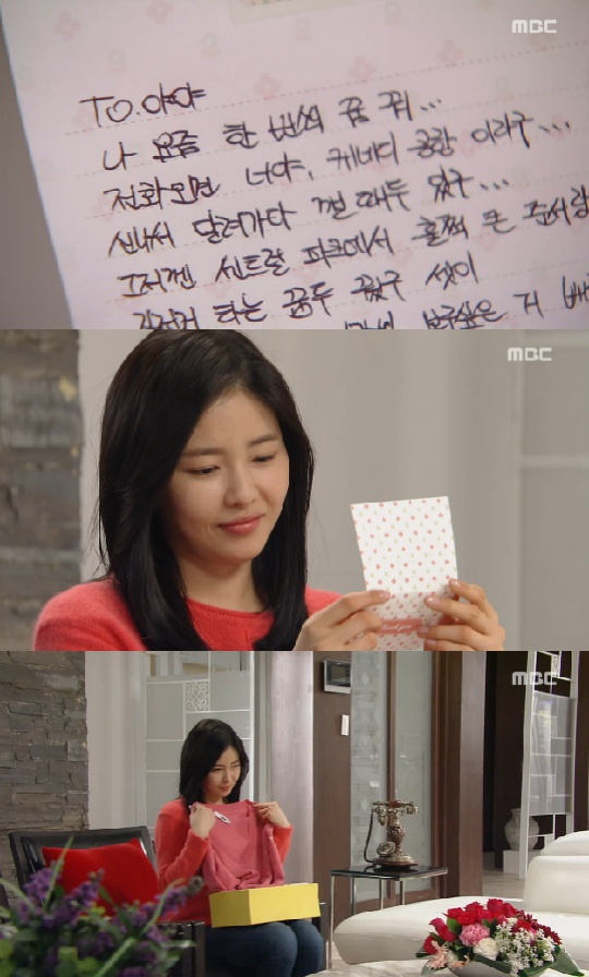 [아시아경제 온라인이슈팀] '압구정백야' 강은탁이 미국 연수중에 박하나에게 애틋한 마음이 가득 담긴 편지를 보냈다.25일 방송된 MBC 일일드라마 '압구정백야'에서는 장화엄(강은탁 분)이 연수를 위해 미국으로 떠나는 모습이 그려졌다. 화엄은 한국의 집에서 크리스마스트리를 꾸미고 있던 백야(박하나 분)에게 편지와 선물을 보내며 마음을 표현했다. 편지에서 화엄은 "나 요즘 한 번씩 꿈꿔. 전화 오면 너야. 케네디 공항이라고. 신나서 달려가다 깰 때도 있고. 그저께는 셀트럴 파크에서 훌쩍 큰 준서랑 자전거 타는 꿈도 꿨고 셋이. 아무튼 꼬맹이 아가씨 보고 싶은 것 빼고는 그런대로 잘 지내"라며 백야에 대한 그리움을 드러냈다. 이어 "너 꿈에 나 출연 안 해? 겨우 한 달 됐는데 생각나고 보고 싶어 괜히 왔나 후회도 되고. 그렇지만 잘 마치고 갈 거야"라고 덧붙였다. 화엄은 "이번 크리스마스이브 집에서 조용히 잘 지내면 내년에 내가 아주 근사한 파티 열게. 무슨 뜻인지 알지? 이 편지 읽으면 사랑과 행복이 느껴졌으면 해 내 사랑이 전달되기를"이라고 편지를 마무리했다. 화엄이 편지와 함께 보낸 상자 안에는 카디건이 들어 있었고 백야는 카디건을 몸에 대 보며 설레는 미소를 지었다. 25일 방송된 '압구정백야' 113회의 시청률은 15.9%로 전날 방송분과 동일한 수치를 기록했다. 온라인이슈팀 issue@asiae.co.kr<ⓒ세계를 보는 창 경제를 보는 눈, 아시아경제(www.asiae.co.kr) 무단전재 배포금지>