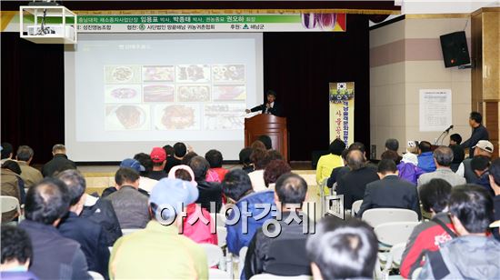 “올해 99만㎡ 본격 재배, 겨울배추 대체작목 기대”[아시아경제 노해섭 기자]겨울배추 과잉 생산으로 가격 경쟁력에 어려움을 겪고 해남군에 새로운 소득 작목으로 안토시안 빨간배추가 새롭게 떠오르고 있는 가운데 성진영농조합법인(대표 안종옥)가 마련한 안토시안 빨간배추 설명회가 지난 26일 해남예술문화회관 다목적실에서 열렸다. 관내 배추재배 농가를 비롯해 이상조 전 밀양시장, 고재천 웅진식품 사장, 임용표 충남대학교 교수 등 300여명이 참석해 빨간배추 재배방법, 특징, 수출방법 등에 대한 설명이 이뤄졌다.이번 설명회에서 기능성 배추 생산으로 안정적인 수익이 예상되고 차별화된 배추생산으로 국내 뿐 아니라 일본, 캐나다, 대만 등 수출이 기대되는 안토시안 빨간배추의 고수익 전망에 대해 참석자들의 높은 관심이 이어졌다.빨간배추
