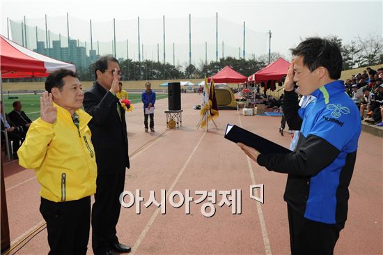 윤장현 광주광역시장은 29일 오전 서구 상무시민공원 운동장에서 열린 제12회 광주광역시장배 생활체육 족구대회 개회식에 참석해 인사말을 했다.